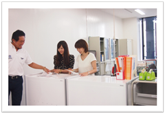 学科専用のコンピュータ演習室には、最新鋭のソフトウェアが揃っています。毎日平日9:30~19:00(火・木曜日は18:30)まで開放されているので、いつも課題に取り組む学生が沢山利用しています。